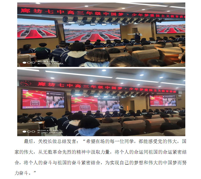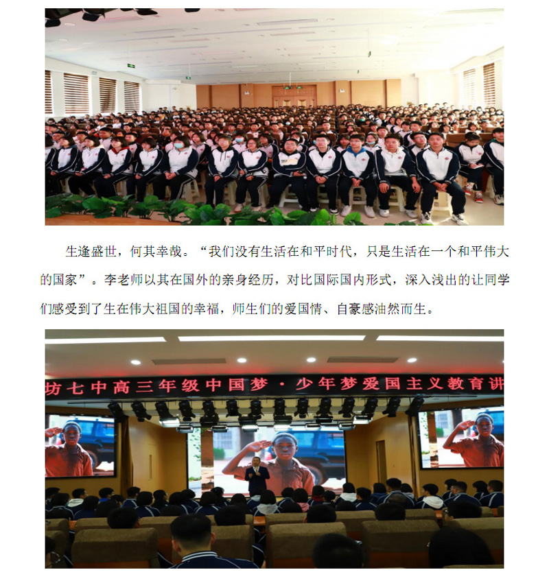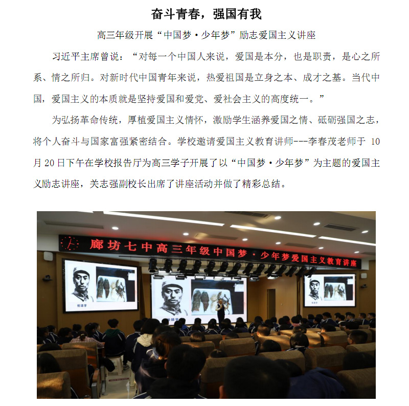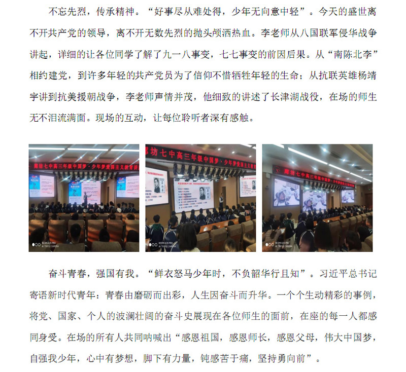 高三年级开展“中国梦•少年梦”励志爱国主义讲座