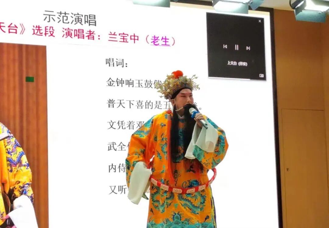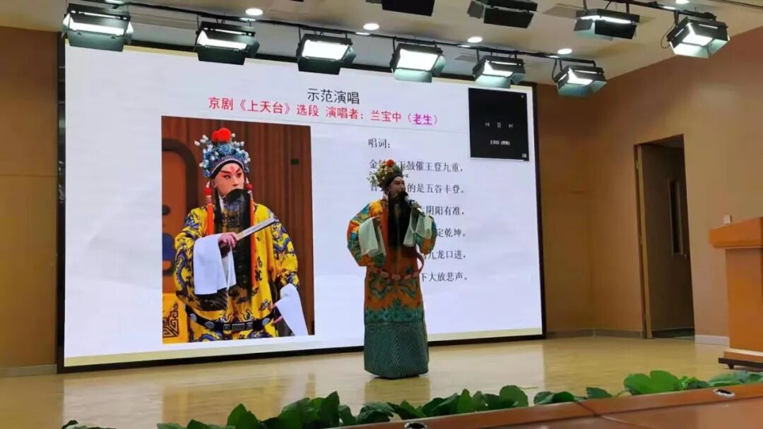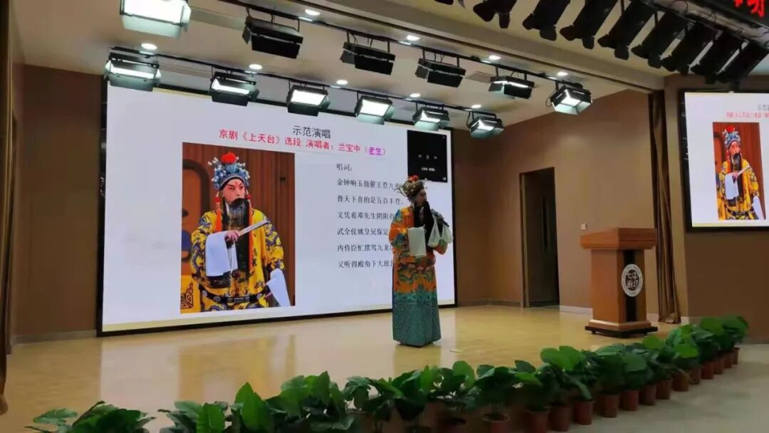 剧团艺术家们大显身手。生行国家一级演员兰宝中为师生带来了京剧经典剧目《上天台》洪亮宽厚,余音绕梁,赢得全体师生阵阵掌声!