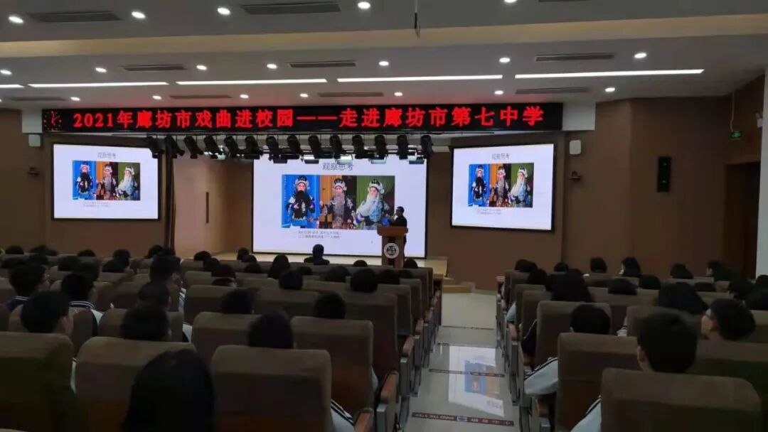 感受戏曲韵味,传承经典文化。为弘扬民族文化、展现国粹精华,也为了让更多的同学们领略戏曲艺术的魅力,了解中华民族的优秀传统文化精髓,11月26日,廊坊市戏剧家协会的艺术家们为我校学子带来了一场戏曲文化视听盛宴。