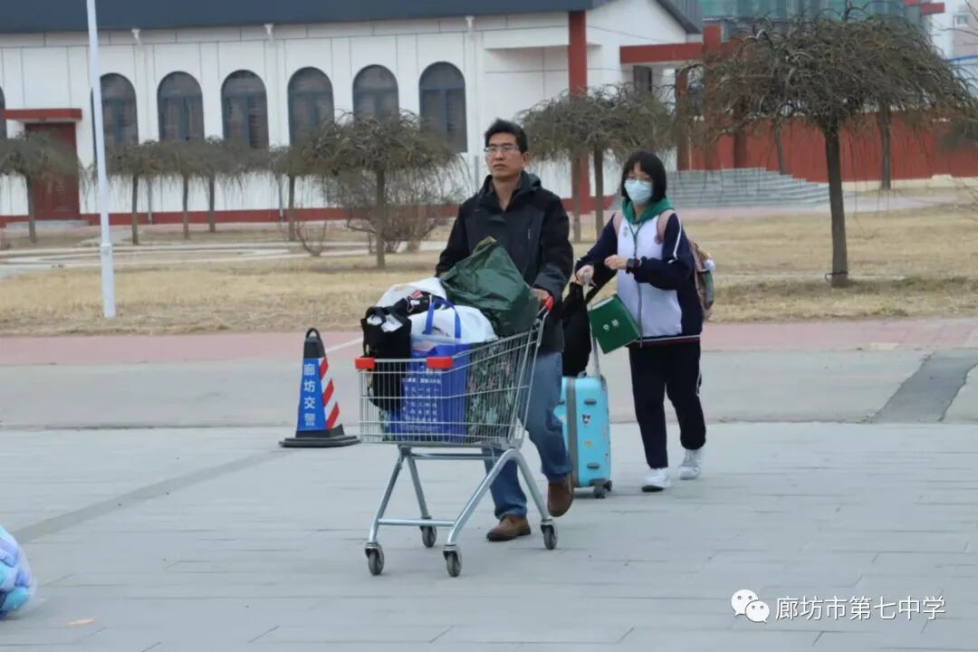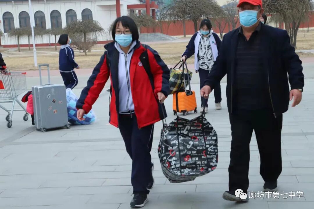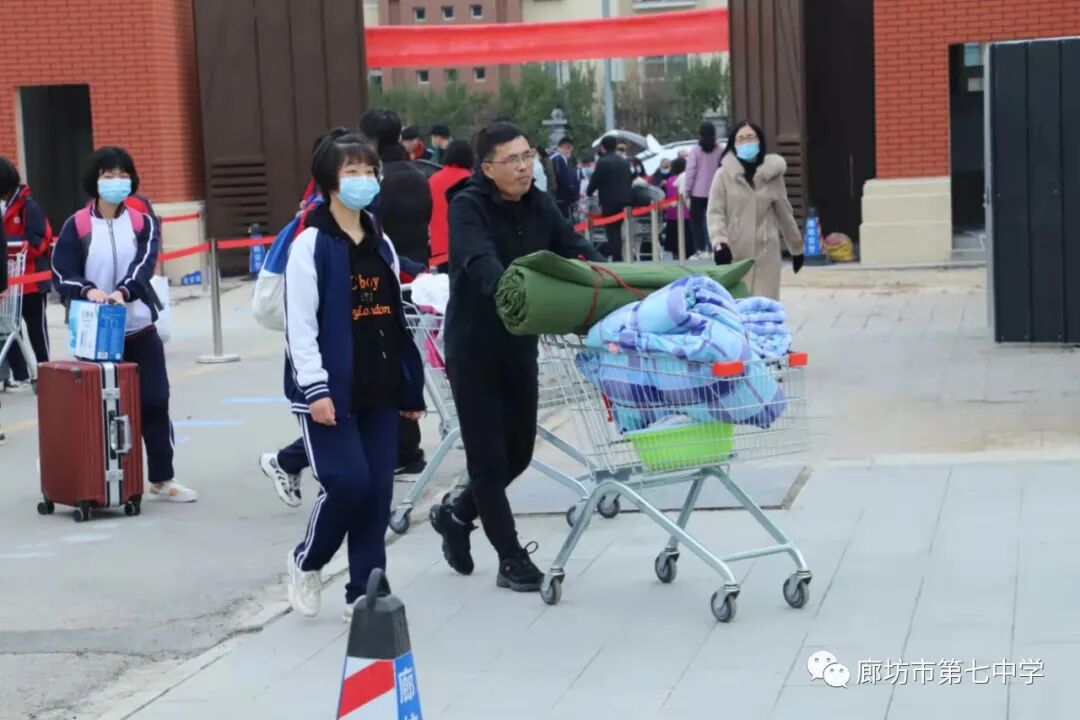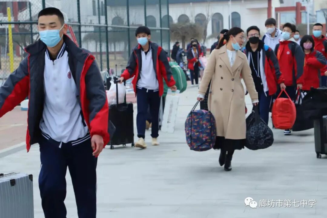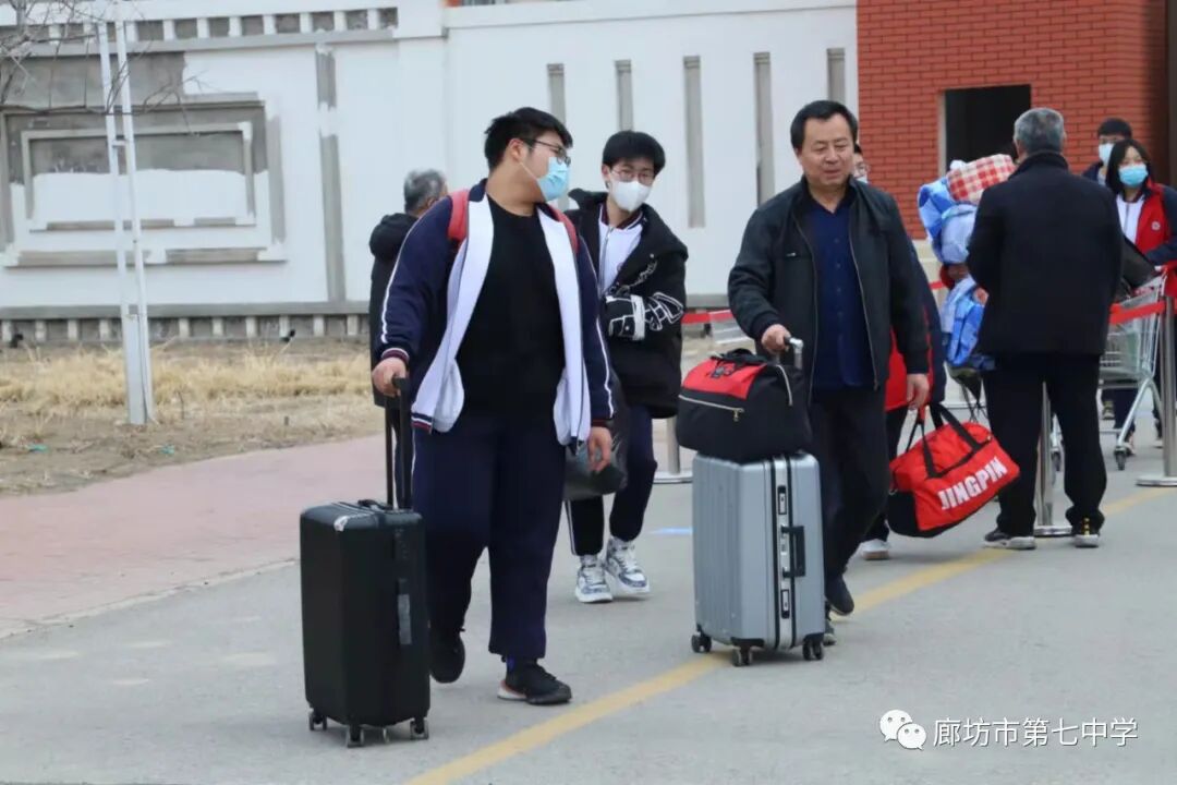 2022年2月28日,廊坊七中实施错峰开学返校,春暖花开学子归来,沉寂的校园重焕勃勃生机。按照防疫要求,家长不能入校,老师们主动接过了帮学生搬运行李的接力棒。