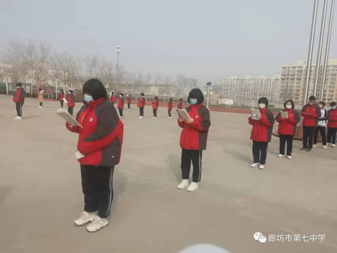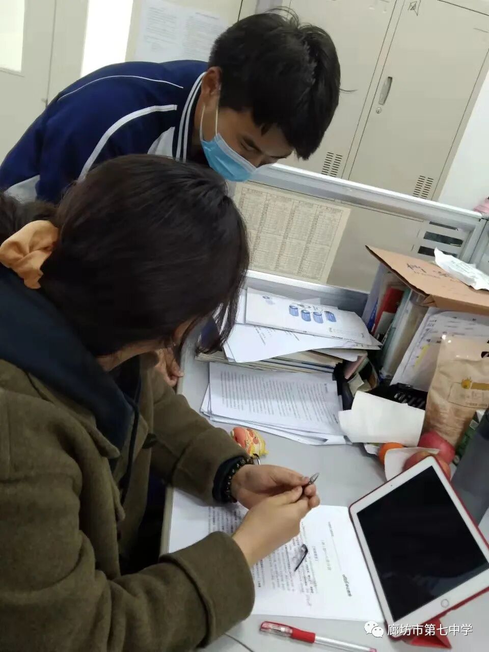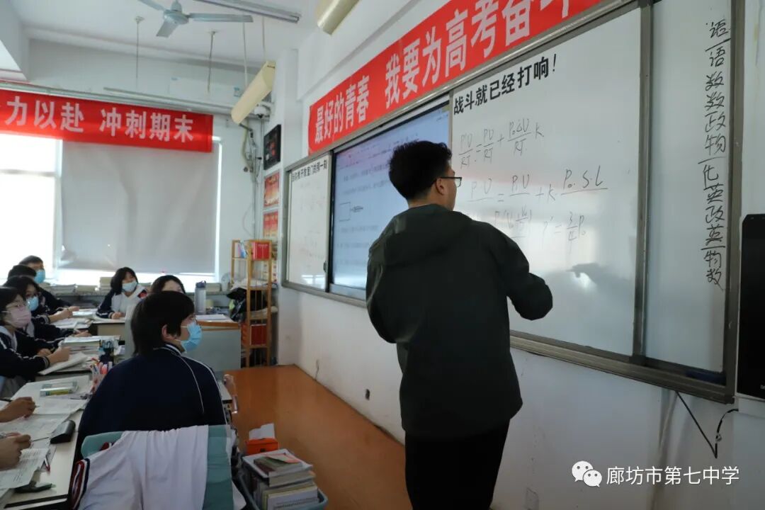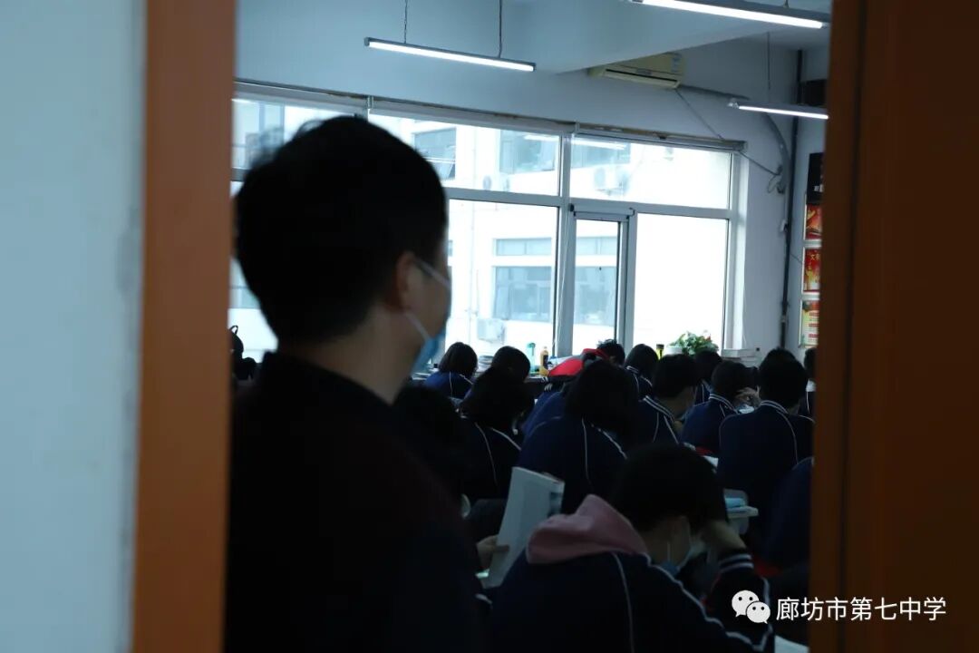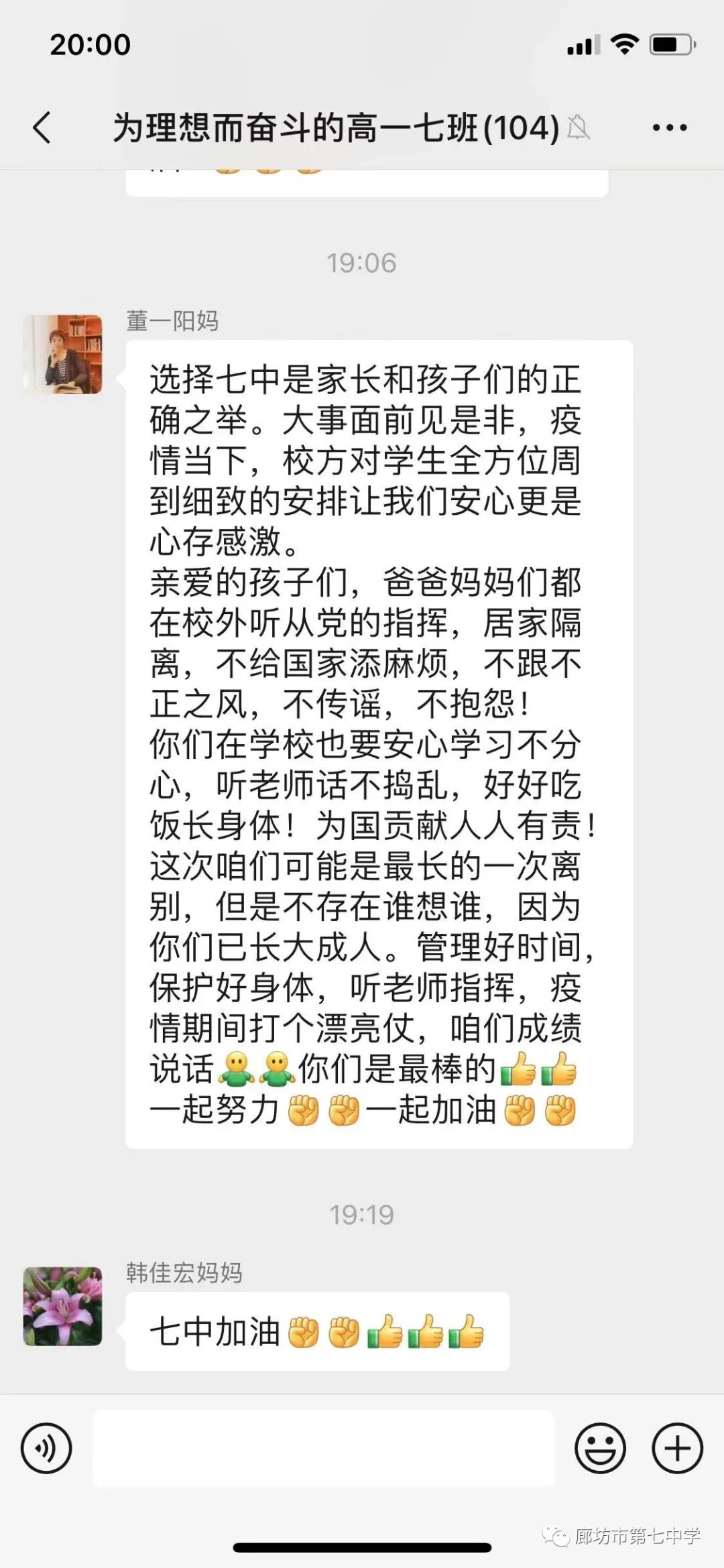 面对疫情发展新形势,学校迅速响应,高中部全体学生1800人,自2022年3月9日起实行全封闭管理。领导班子、中层干部、100多名教师、后勤保障人员主动请缨,舍小家为大家,他们来到校园与学生一起共克时艰,吃住在学校,杜绝与外界接触,积极响应学校号召:疫情当前,课堂就是战场,守护学生就是廊坊七中教师们的使命!