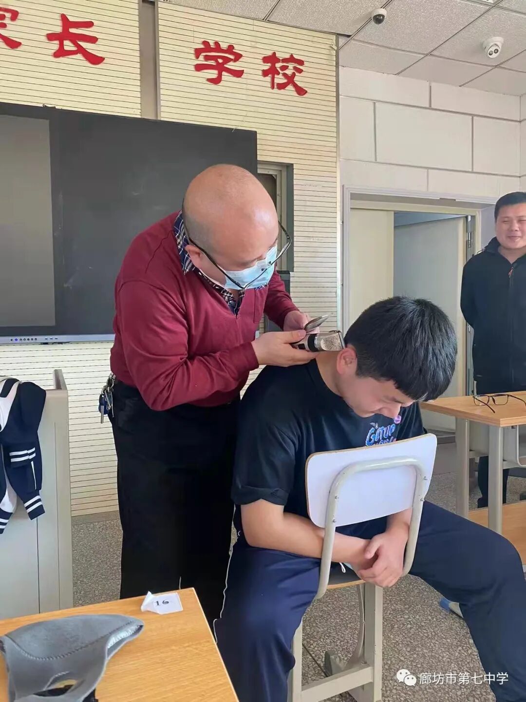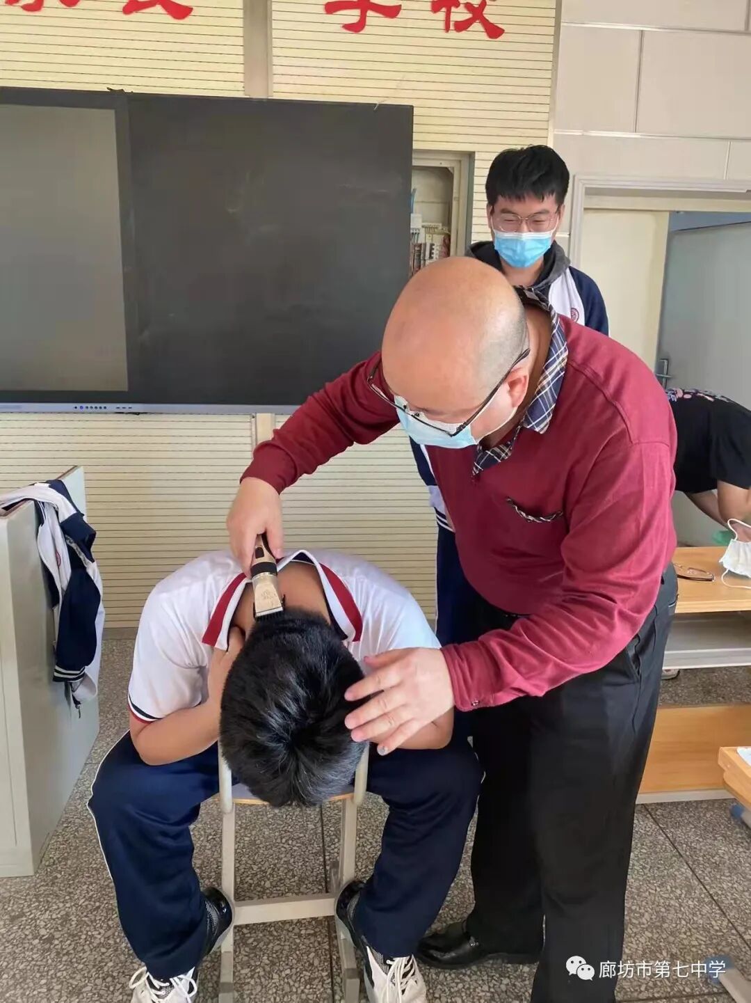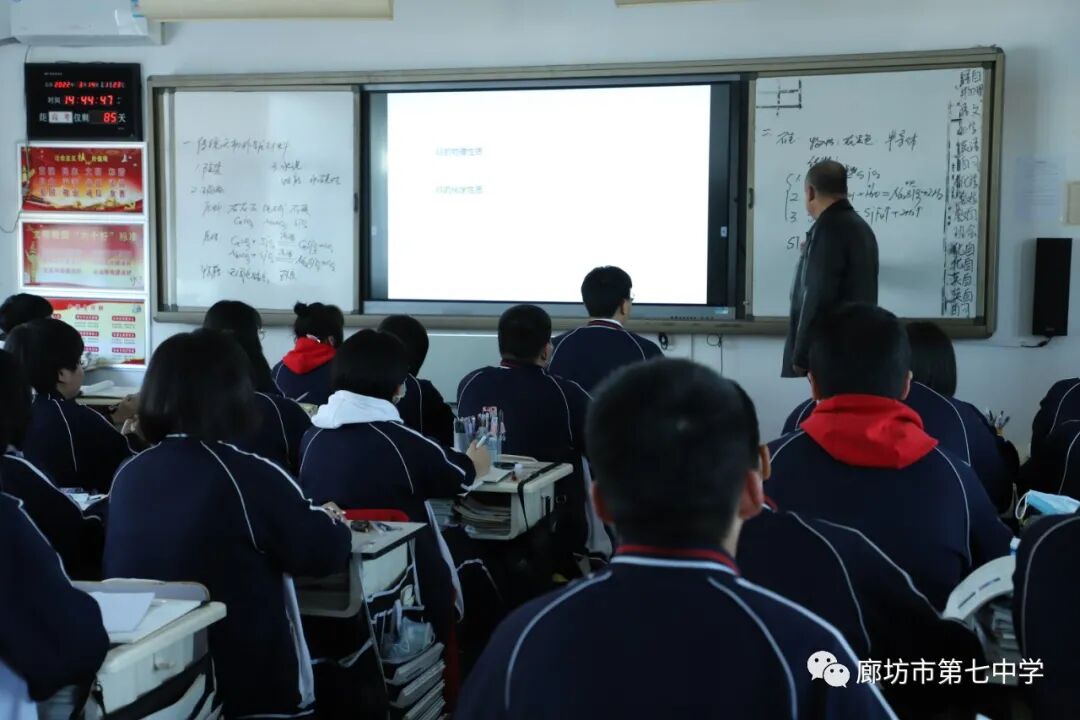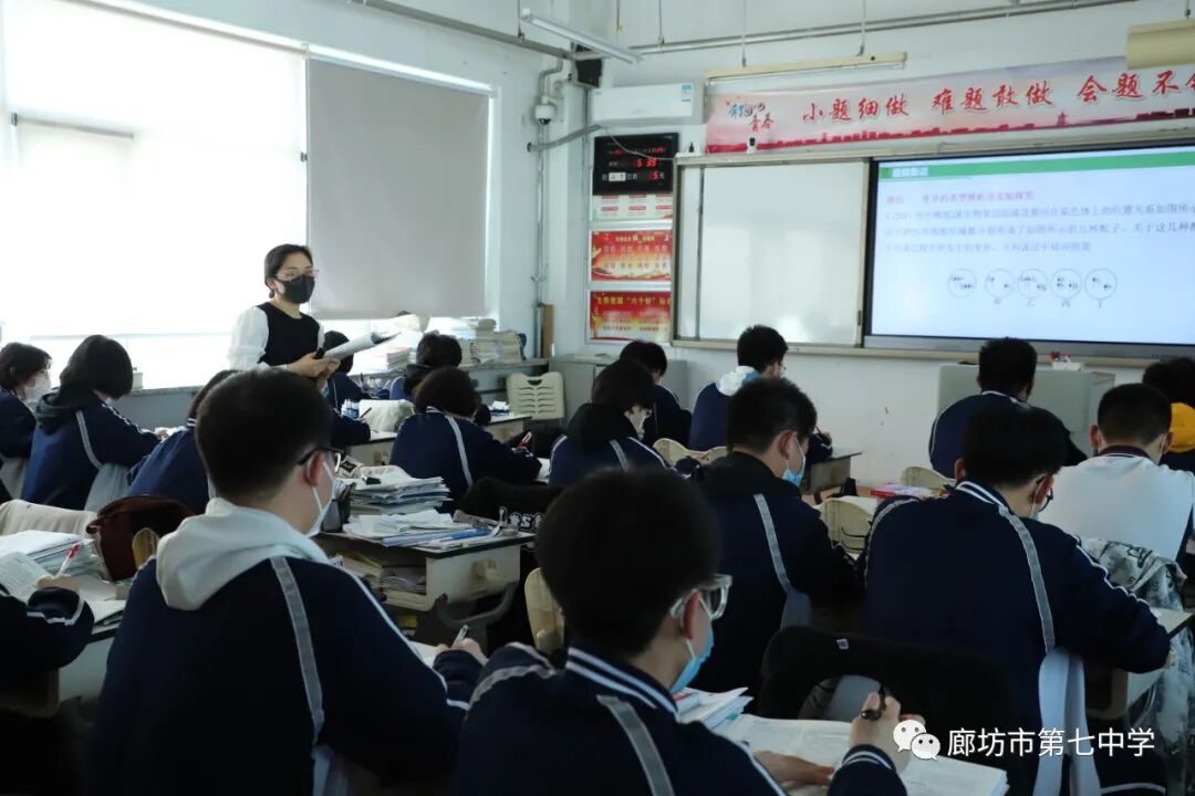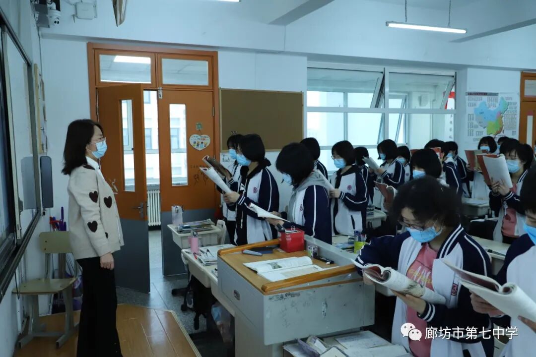 面对疫情发展新形势,学校迅速响应,高中部全体学生1800人,自2022年3月9日起实行全封闭管理。领导班子、中层干部、100多名教师、后勤保障人员主动请缨,舍小家为大家,他们来到校园与学生一起共克时艰,吃住在学校,杜绝与外界接触,积极响应学校号召:疫情当前,课堂就是战场,守护学生就是廊坊七中教师们的使命!