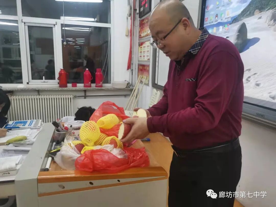 学校心疼老师们辛苦,给老师们一人买了一兜水果,老师们舍不得吃,就全部带到班里,用小刀切成小块,和孩子们一起吃。孩子们说,从来没有吃过这么甜的苹果。