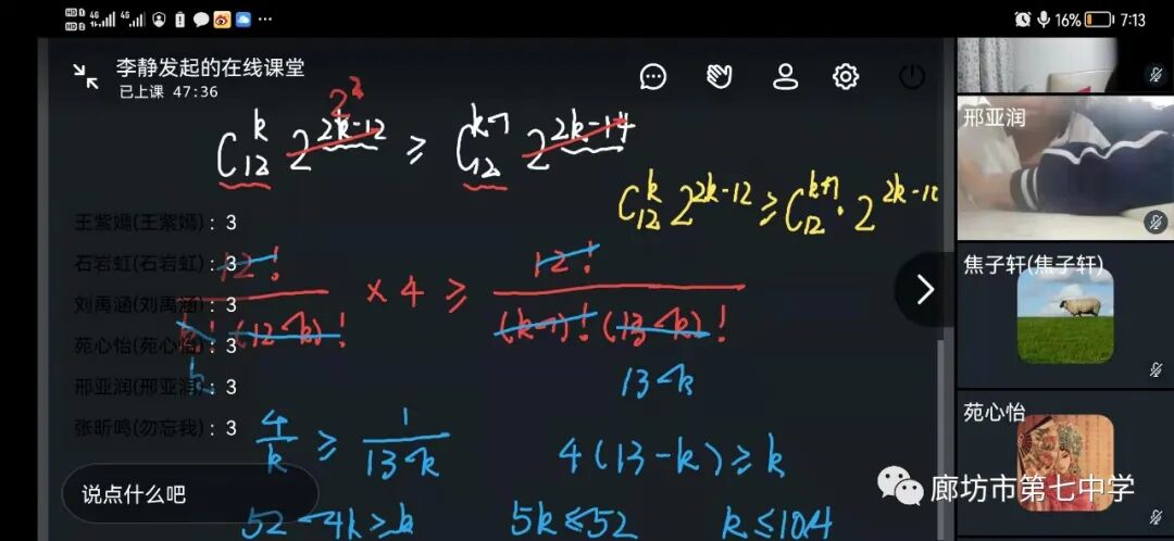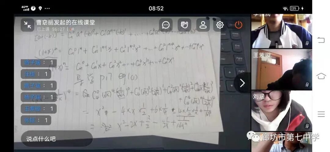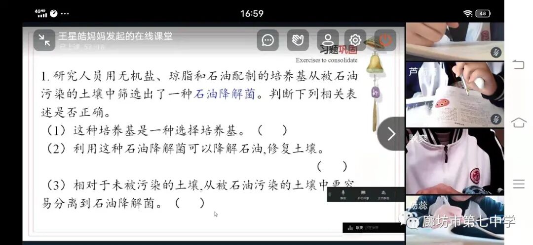 “很多时候,屏幕上,老师认真讲解学习重点,同学们专心致志紧盯屏幕,生怕错过一个环节,这样的场景总是让我很感动,我们无法像医护工作者那样冲锋在前,但我们也在以自己的方式,为廊坊抗疫贡献着力量。”