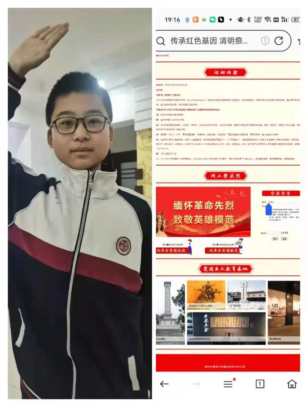 一年一清明,一岁一追思。为了弘扬英烈事迹和精神,传承红色基因,培养学生对传统节日文化的认知和爱国主义精神,我校初中部开展了以“缅怀、追思、传承、奋进”为主题的“网上祭英烈”活动。