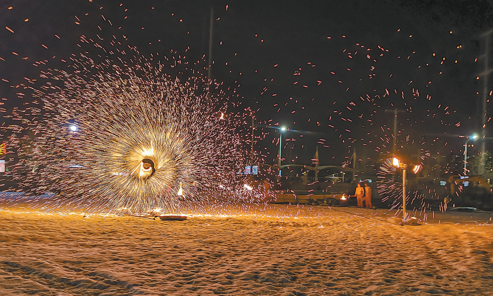 元旦假期,传统民俗打铁花在御龙河公园上演