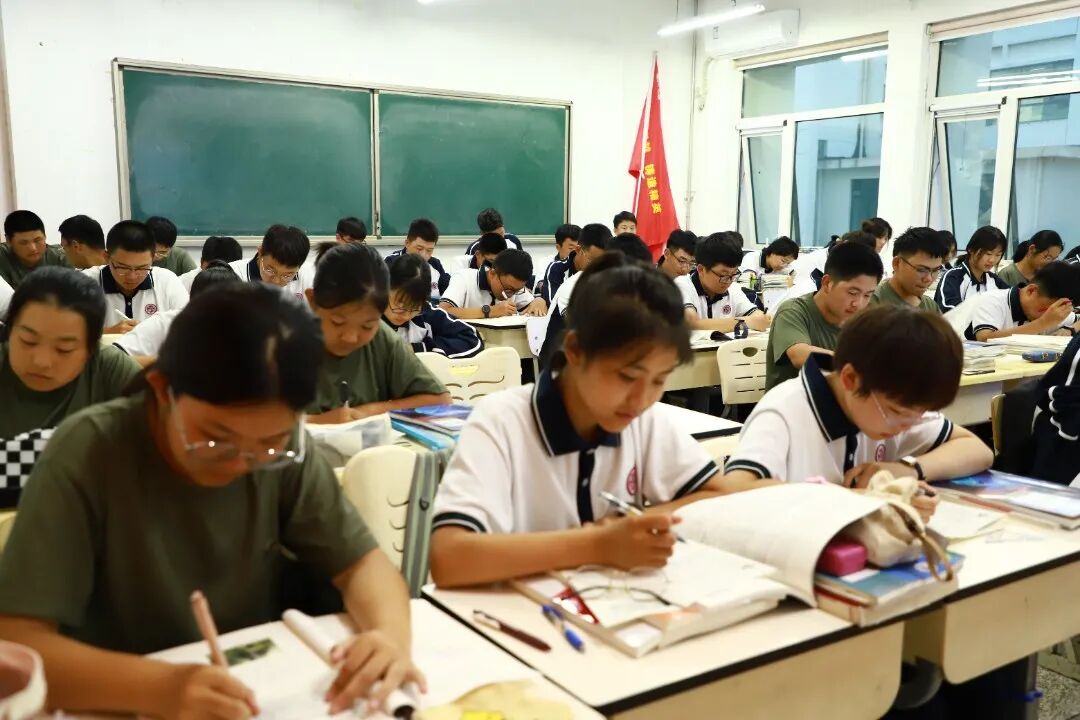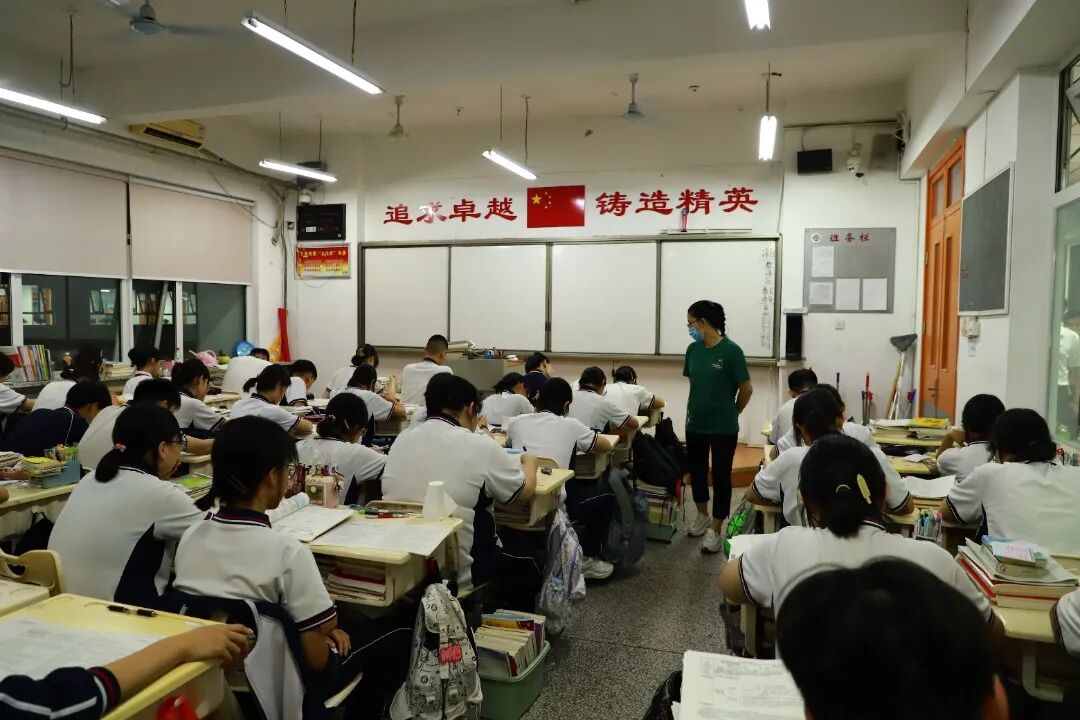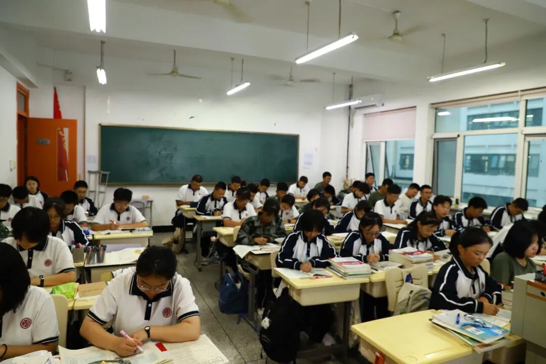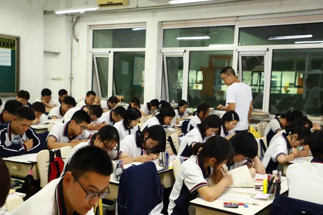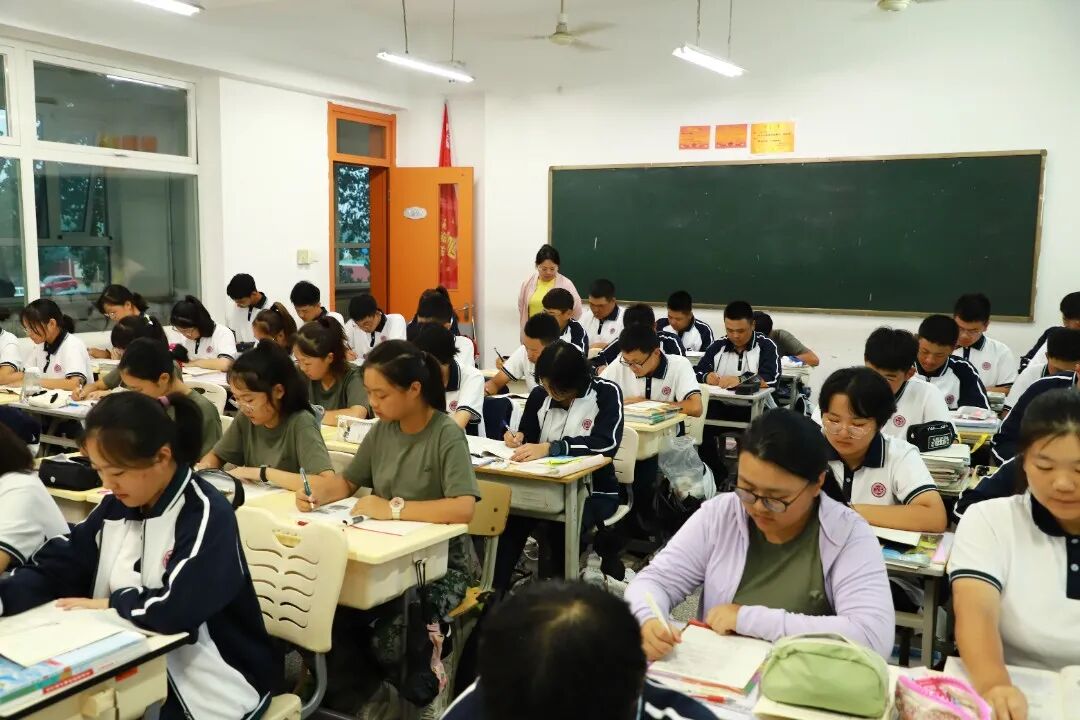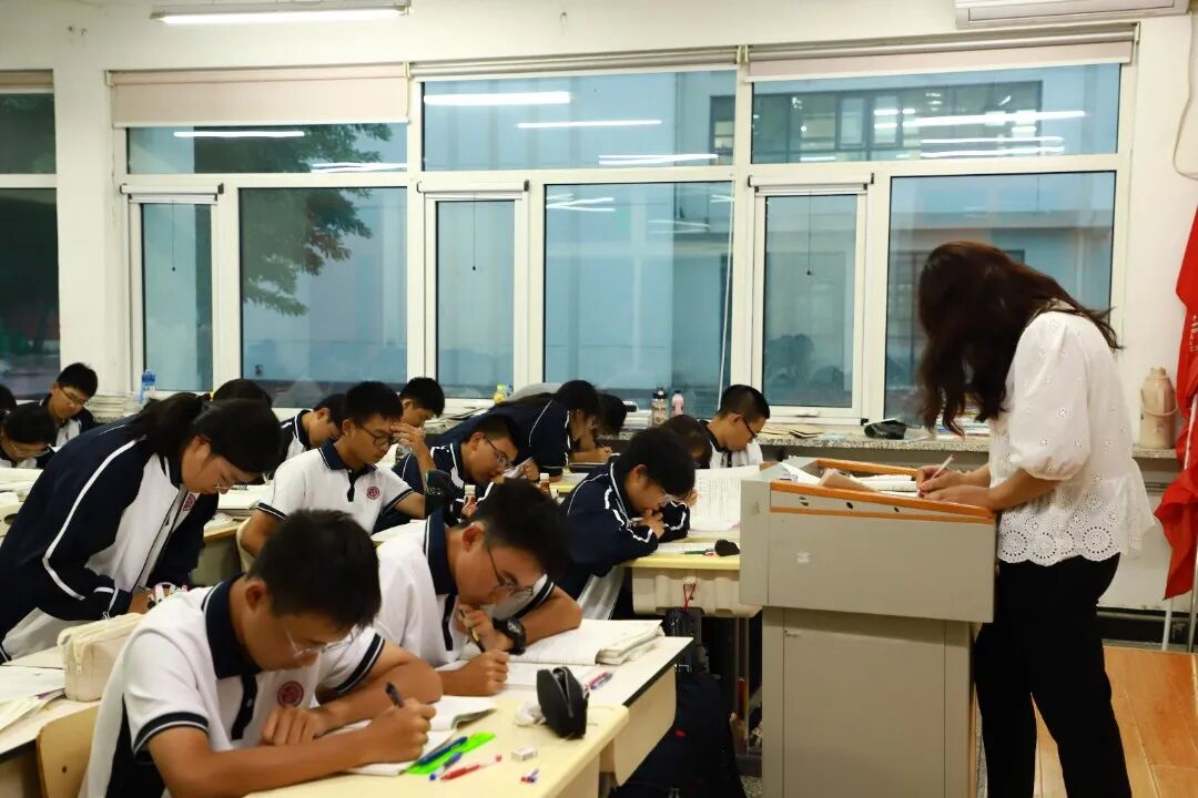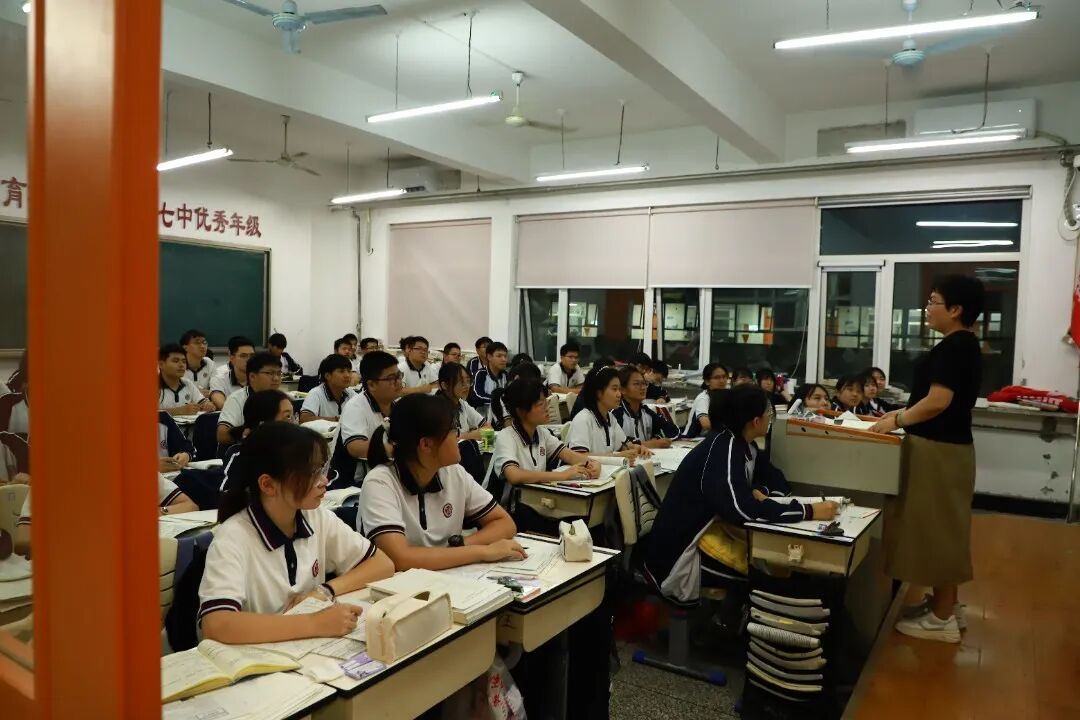 宁静属于这里,无声属于这里,高效属于这里,拼搏也属于这里。同学们记单词、做限训……老师们随时辅导,不让一个学生在奋斗的路上掉队,“自习零抬头”已经成为七中学子最鲜明的标志和习惯。