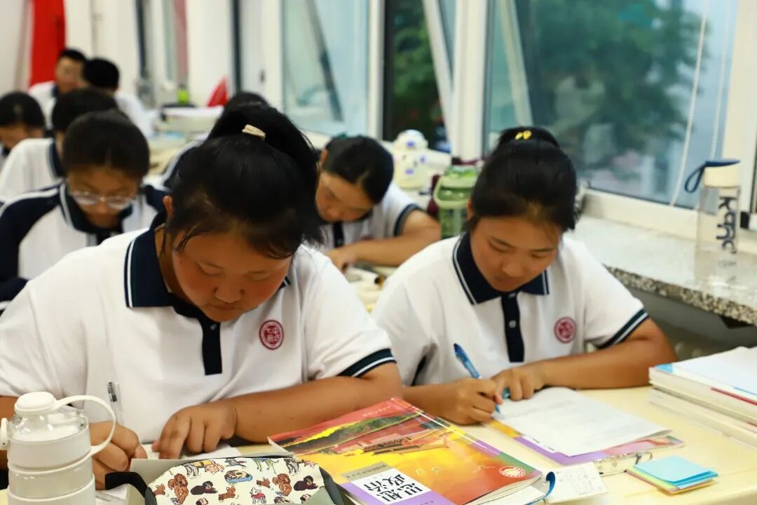 经过了一天的学习,孩子们不见疲态,依旧认真,他们的眼睛里闪烁着求知的光芒,沉浸于每一道习题,记忆着每一个知识点,低头思考的神情、时紧时松的眉头,瞬间把人的思绪牵引到每道复杂难解的题目中。此刻,专注、投入、沉浸就是他们的标签。