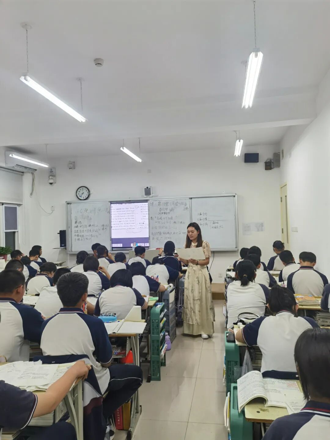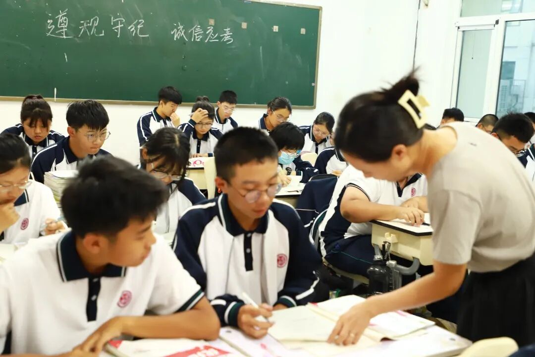 老师们或是站在教室前边备课做题,或者是走下讲台,主动辅导,遇到共性的问题,马上在黑板上讲解,堂堂清,课课清,是老师的习惯。
