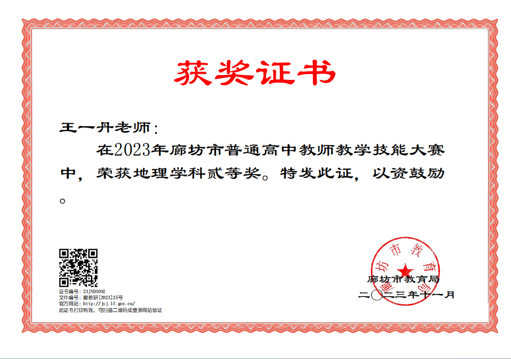 王一丹,高中地理教师,研究生学历,毕业于河北师范大学地理系。在她心中,教育是向美而行的遇见,是温暖人心的坚持。工作以来,她始终恪尽职守,精益求精,用心备课,认真履行教师工作职责,在追求卓越的道路上不断前进。她非常认可陶行知先生“生活即教育”的理念,坚持把教育融入生活,在思考中把厚厚的课本变成了薄薄的知识、把课堂变成了快乐的知识海洋。