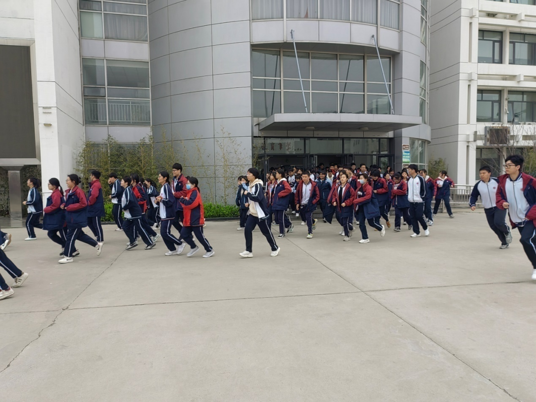 伴随着急促的防空警报声,一场紧张而有序的疏散逃生避险演练开始了。几千名学生在老师们的引导下,按照规定路线,有序疏散,紧急转移到操场安全区域。而在学校的监控中心,校领导班子全体成员,也正在通过大屏幕认真观摩演练全程。