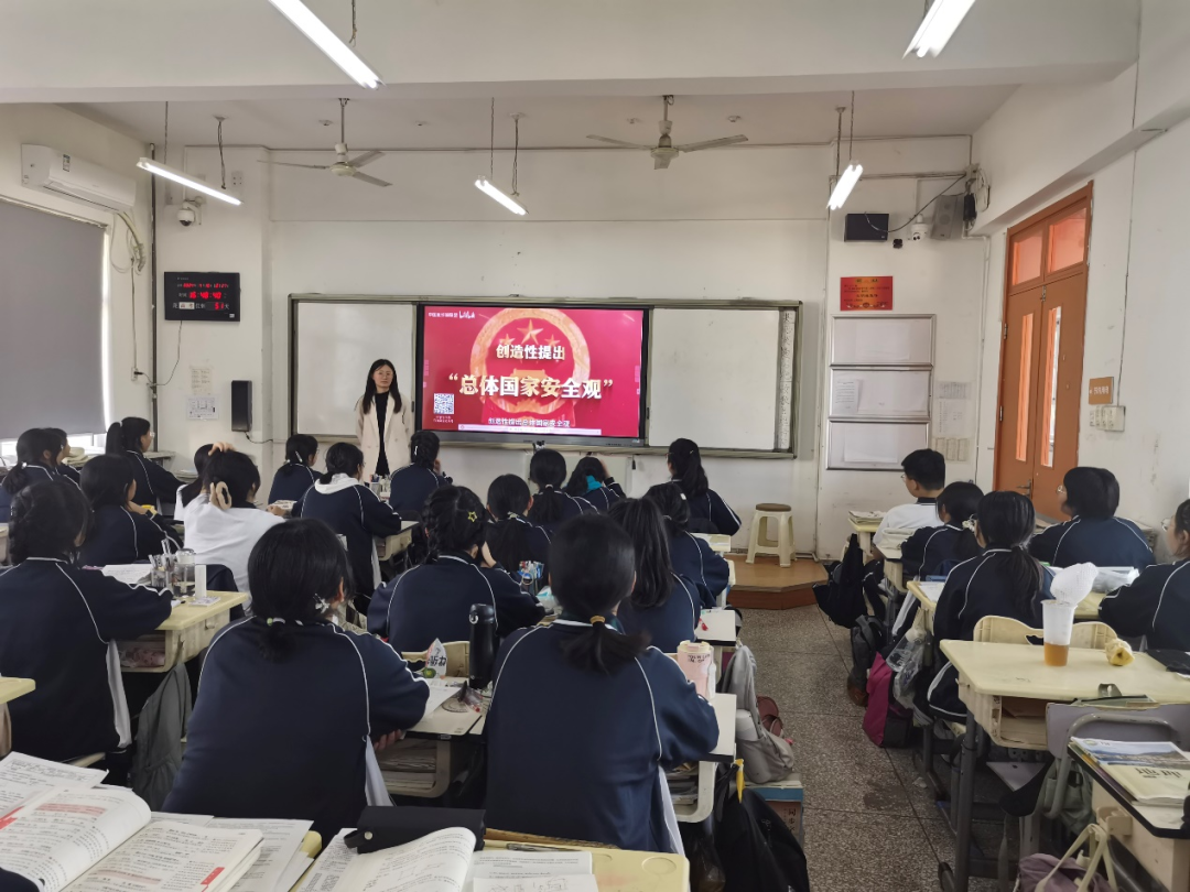 国旗下,高二年级的师生代表用铿锵有力的声音,讲解了国家安全的重要意义,号召全体师生要肩负起保守国家安全的重大责任,为国家的未来发展和伟大复兴而赓续奋进。