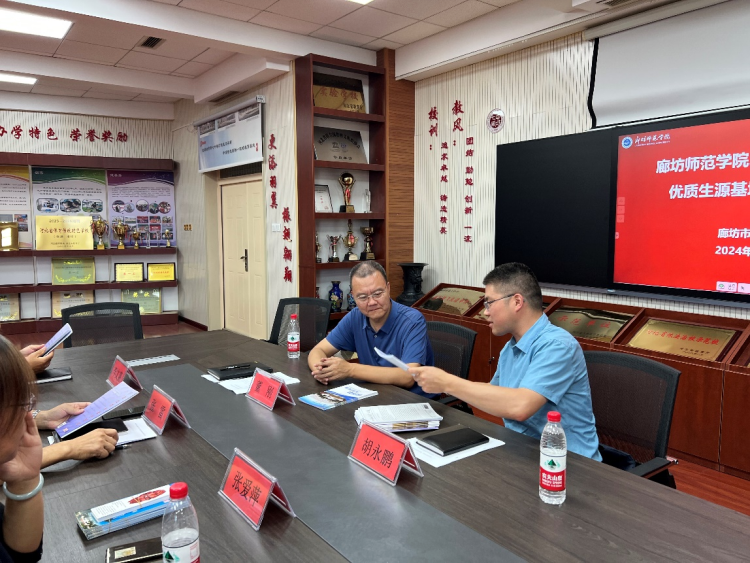 胡永鹏副院长对廊坊师范学院的校园文化、办学理念、教育科研、专业特色及双导师制的建设成果等进行了详细介绍,表达了与我校的合作交流意向,并诚挚邀请我校教师到廊坊师范学院参观交流。