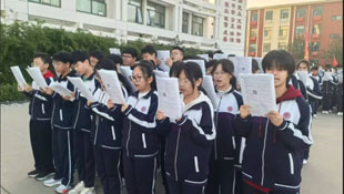 向阳而生,谱写青春激扬迎风而上,绽放自信光芒。当阳光洒满校园七中的操场上便响起整齐的脚步声。