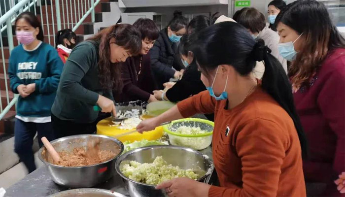 为了让同学们度过一个美好、快乐又有意义的封闭学习时光,我校举行了“爱在冬日,情暖高三”主题活动,封闭在校的各级领导、工作人员与高三全体师生一起包饺子、吃团圆饭。