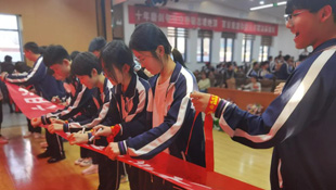 百日冲刺战鼓擂,青春无悔梦必追。为了激励全体同学鼓足干劲,明确目标,坚定信心,团结拼搏,初三年级全体师生在报告厅隆重举行了中考百日誓师大会。